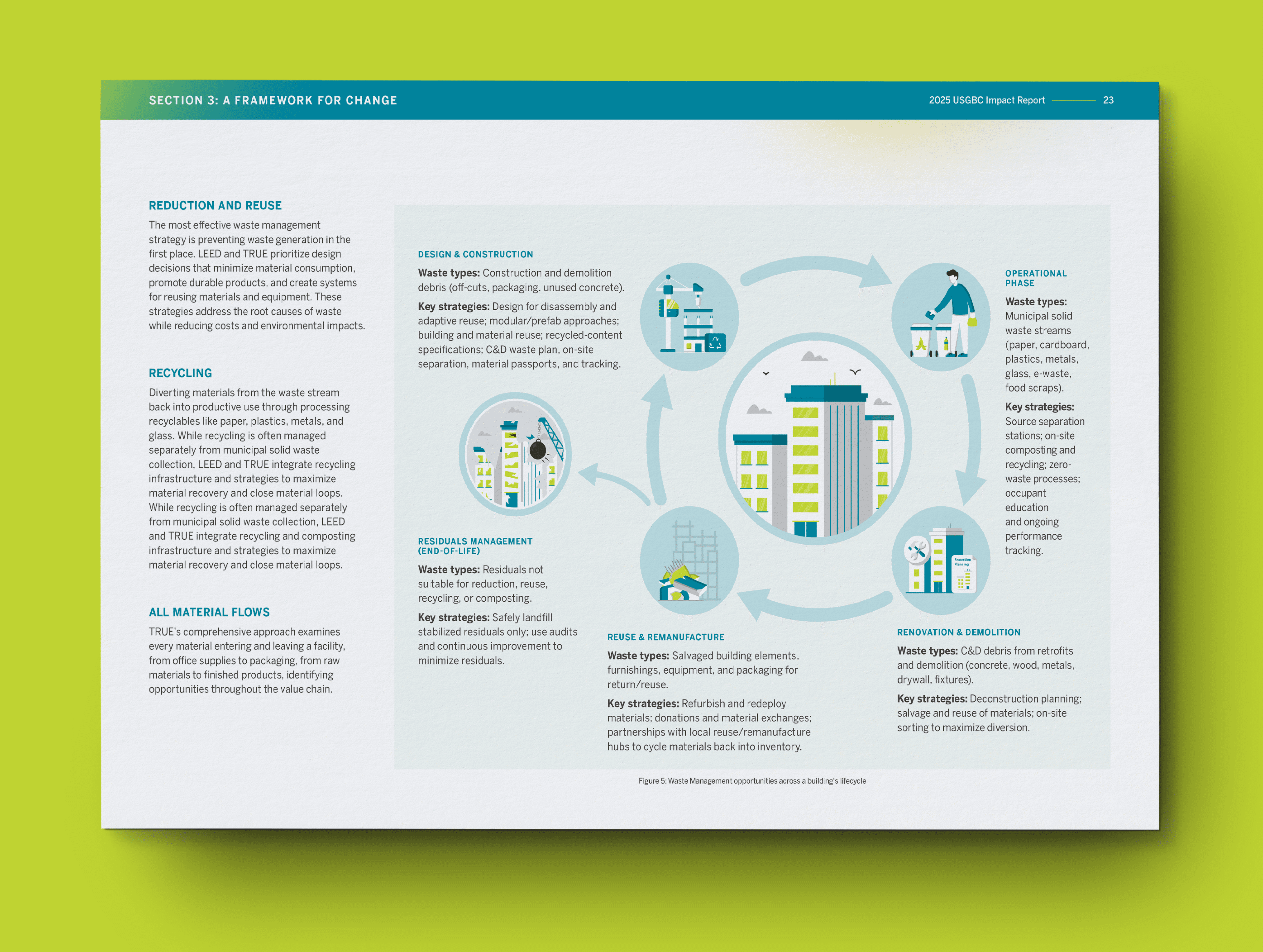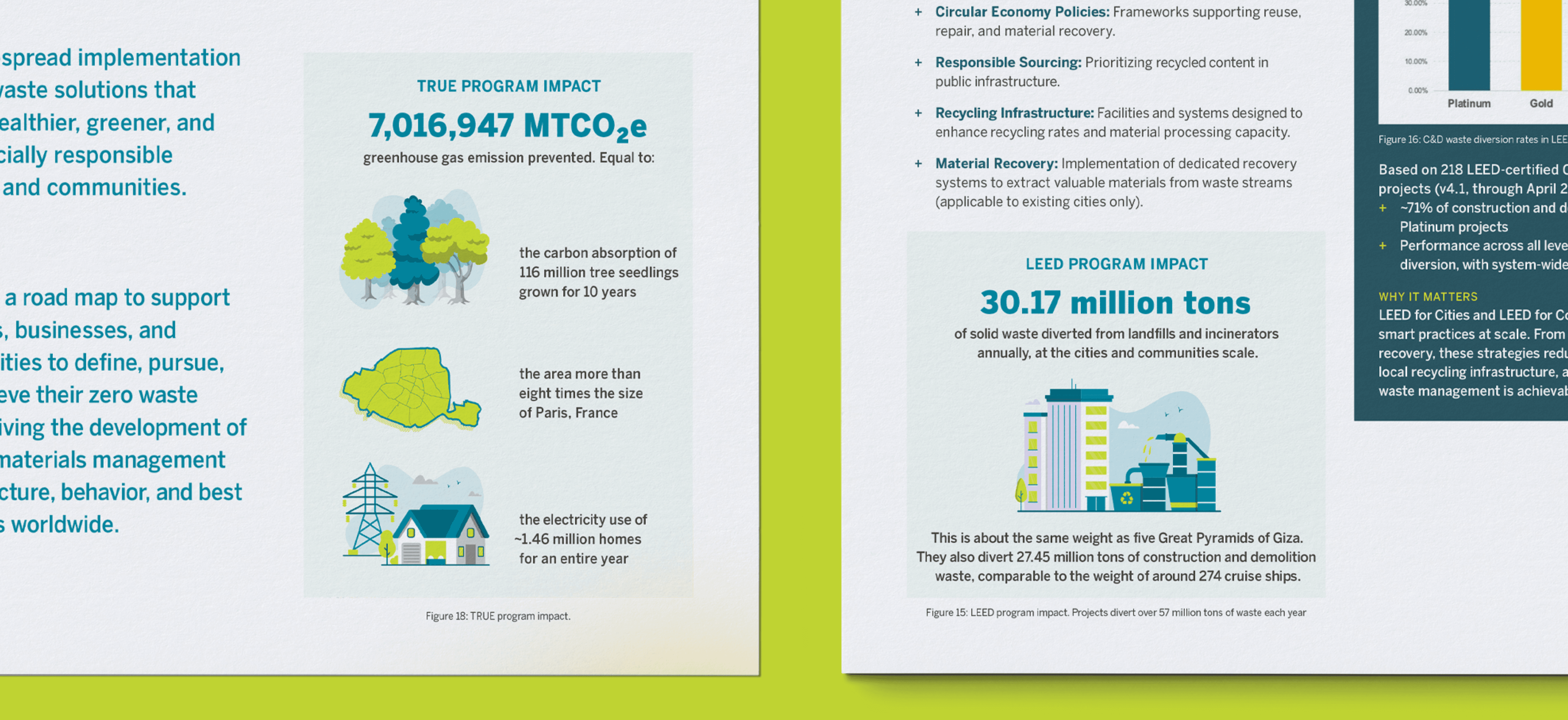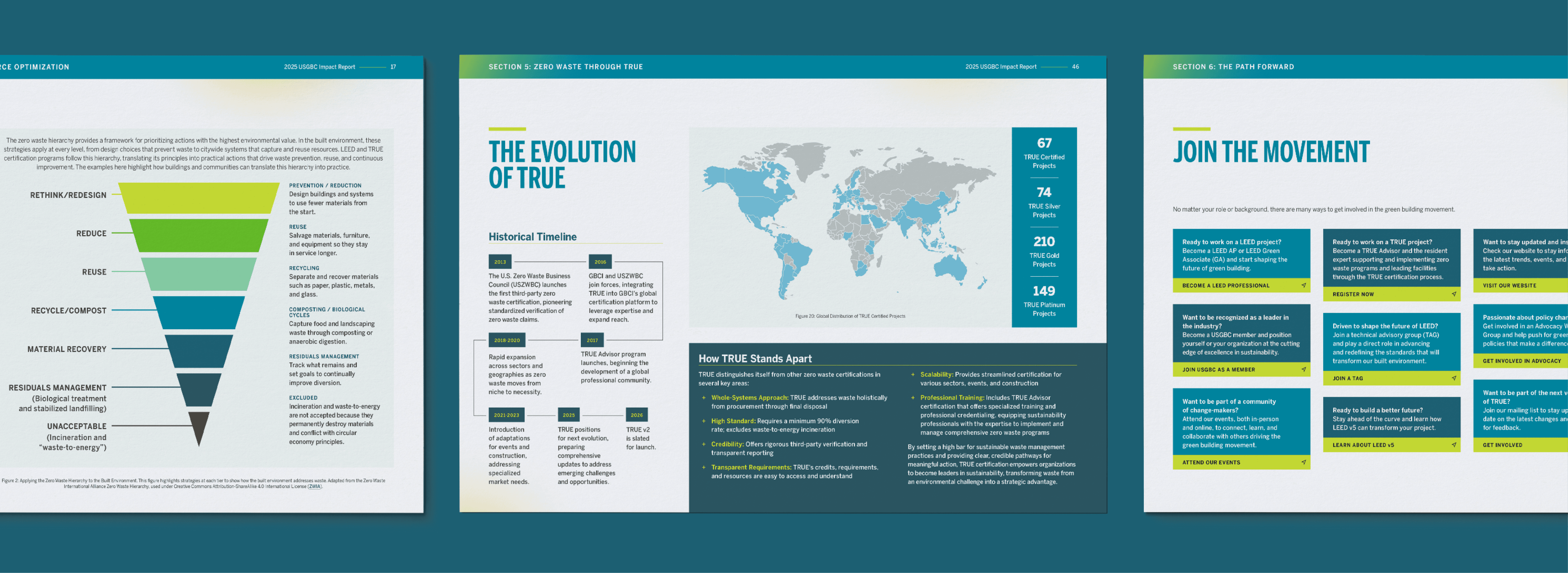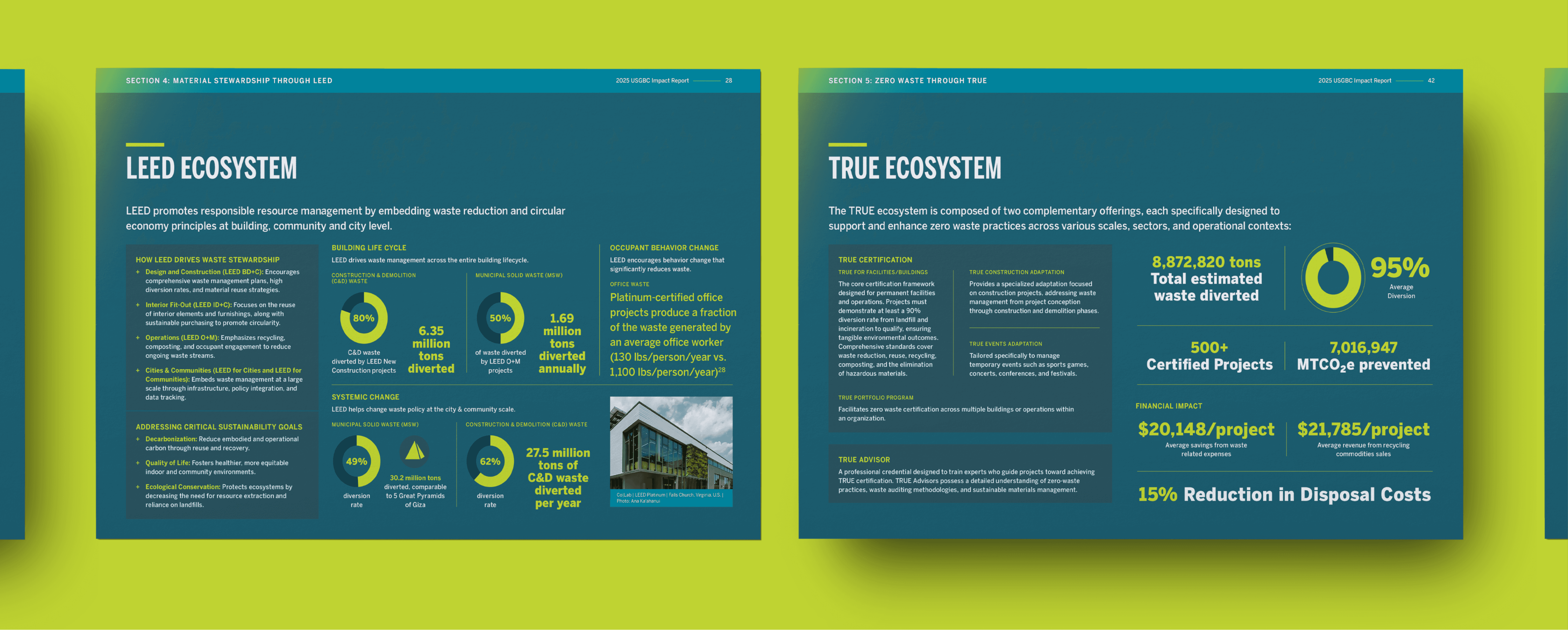 A refreshed impact report design that brought clarity, cohesion, and long-term flexibility to U.S. Green Building Council's (USGBC) sustainability storytelling.