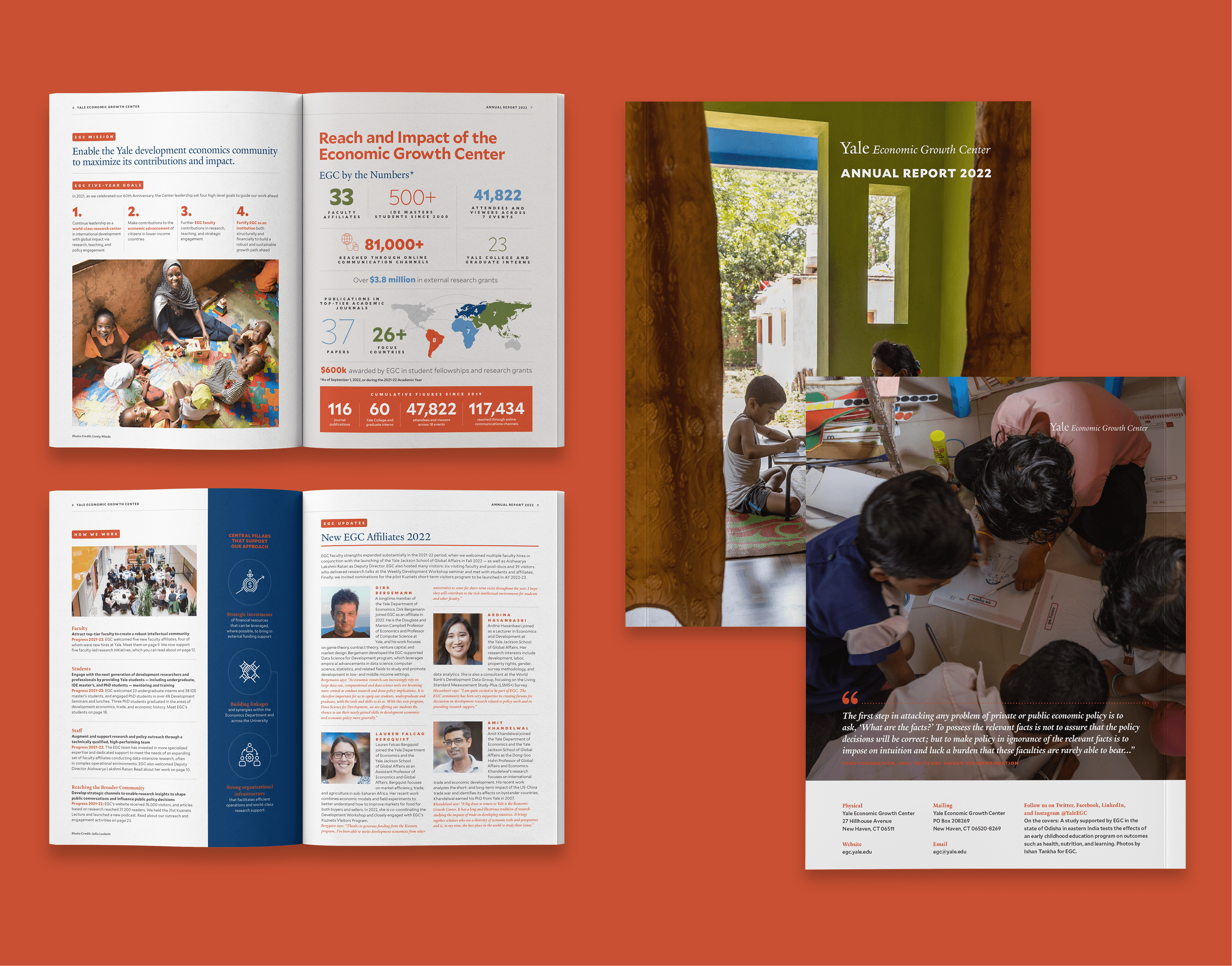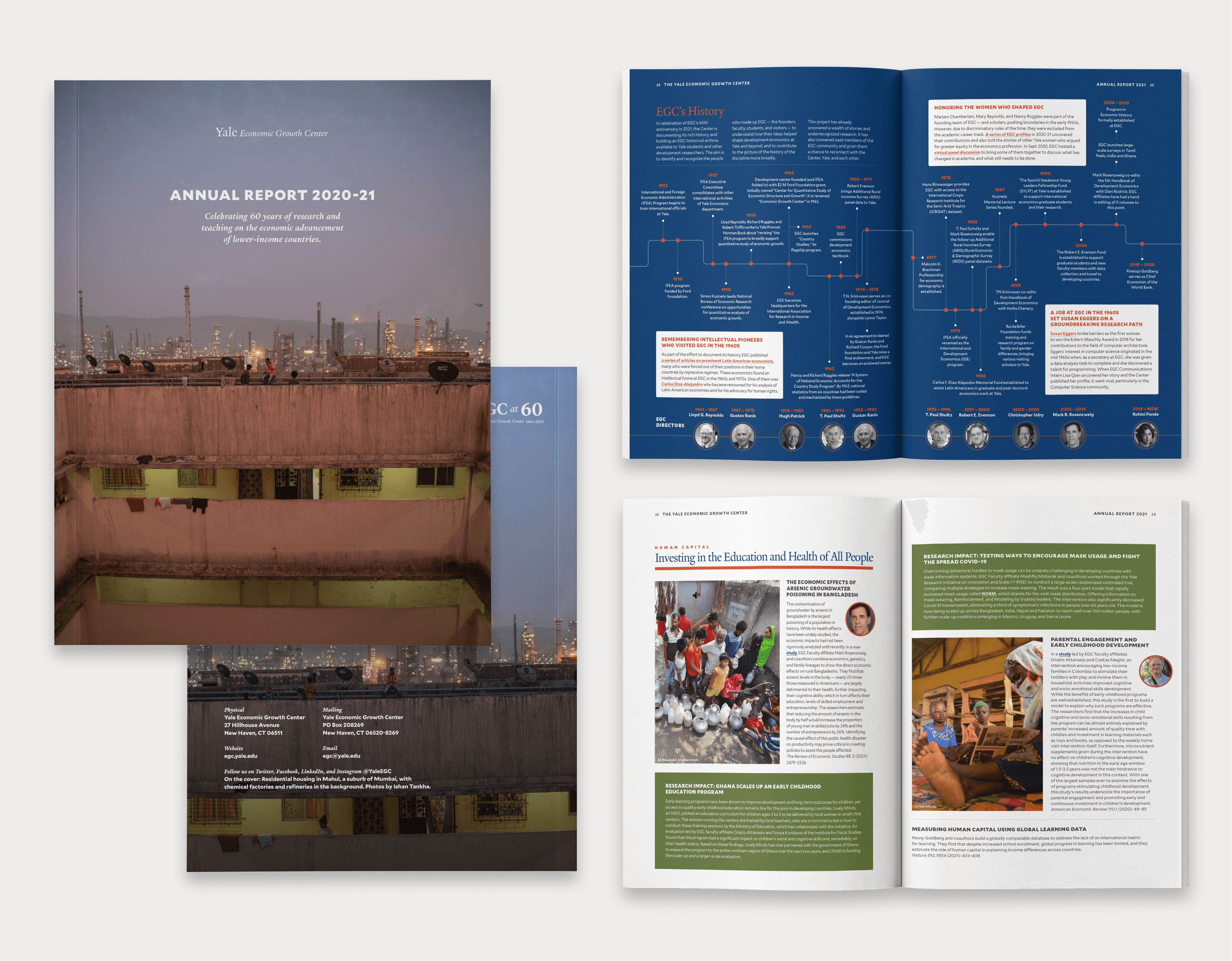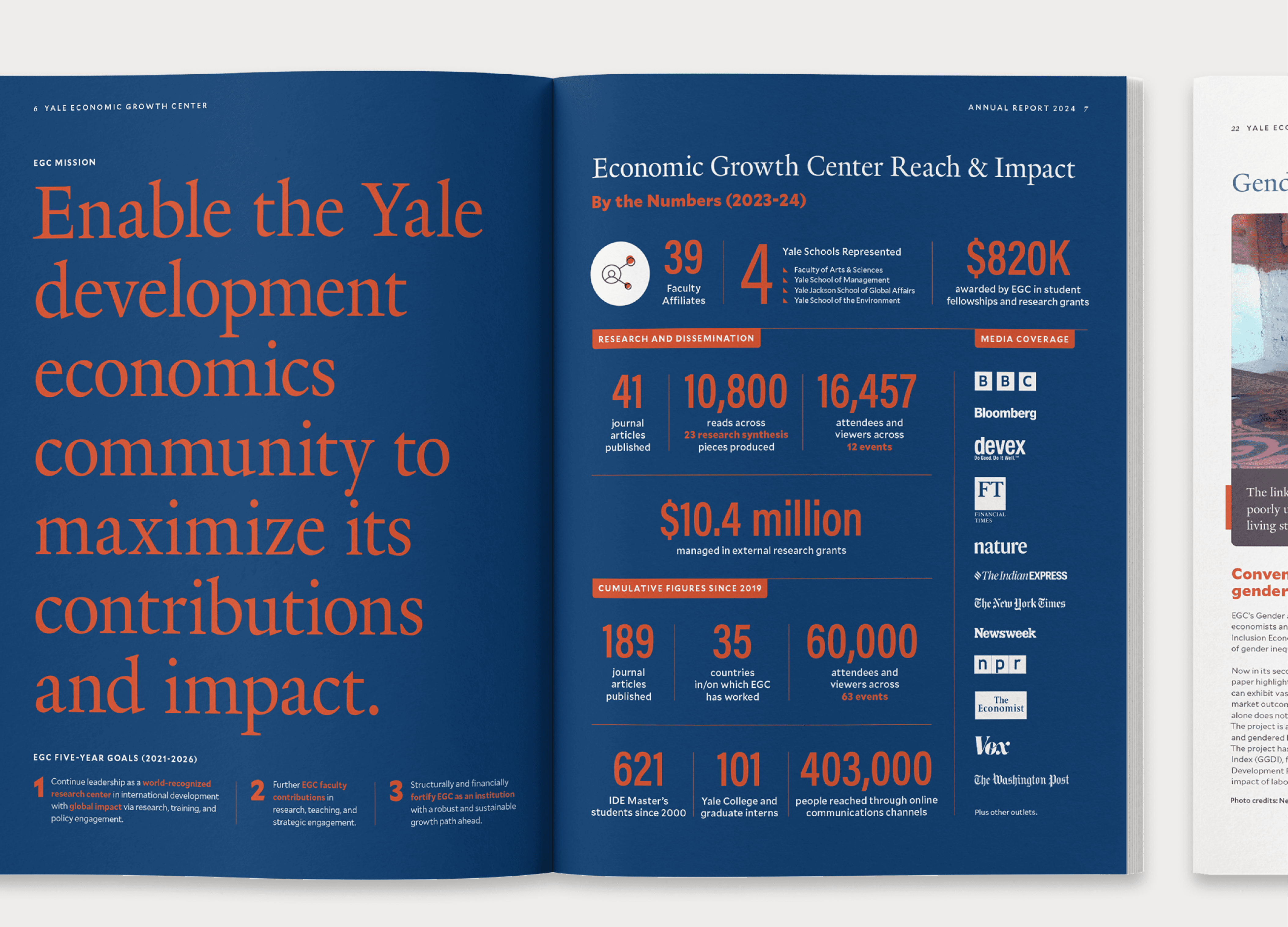 Yale Economic Growth Center partnered with Gokoro Design to design their annual reports, creating a cohesive editorial series over multiple years.